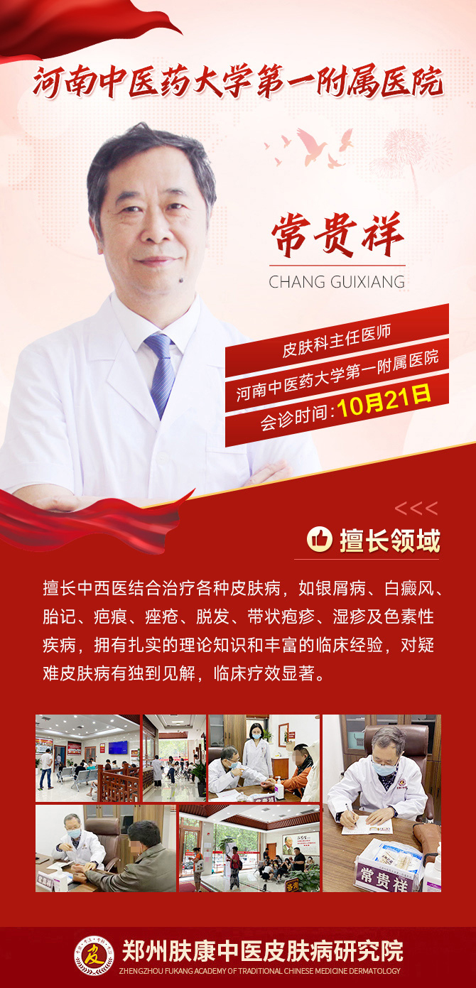 特邀常贵祥教授、高永军教授于10月21-22日莅临郑州肤康会诊。